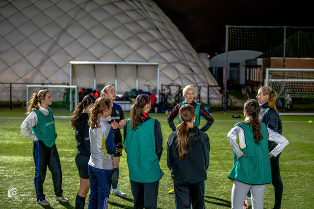 Er werd begonnen met een warming-up in div spelvormen. Tijdens deze warming-up werd er veel lol gemaakt door de dames. Zij hadden er allemaal veel zin in.