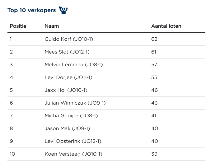 De eerste week van de Grote Club Actie 2025 is achter de rug en wat een fantastische start hebben de verkopers gemaakt! We zitten nu al ruim boven het resultaat van vorig jaar. Tot dusver zijn 975 loten aan de man gebracht, terwijl de teller vorig jaar op 833 bleef steken.