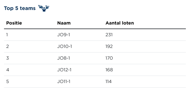 Op deze ranglijst gaan de toppers van de JO9 fier aan kop. Er is voor de achtervolgende ploegen echter nog voldoende tijd hen te achterhalen.