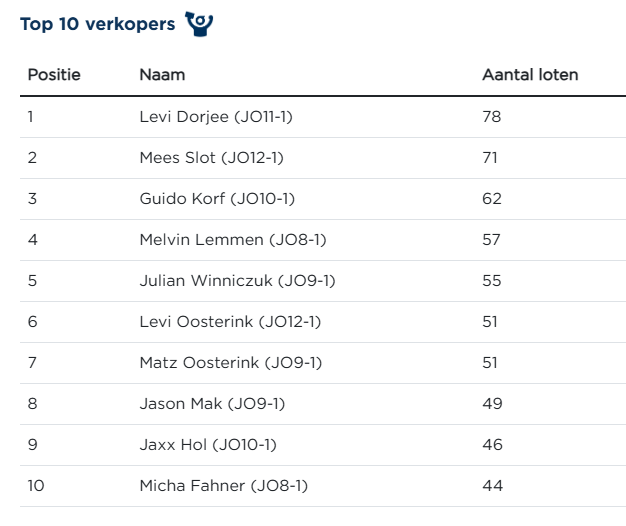 Na de flitstende start zijn onze jongens en meisjes met onverminderde energie doorgegaan met verkopen. In de tweede week zijn er weer 258 loten aan de man gebracht! Dat betekent dat er inmiddels ruim € 3.000 is binnen gehaald.