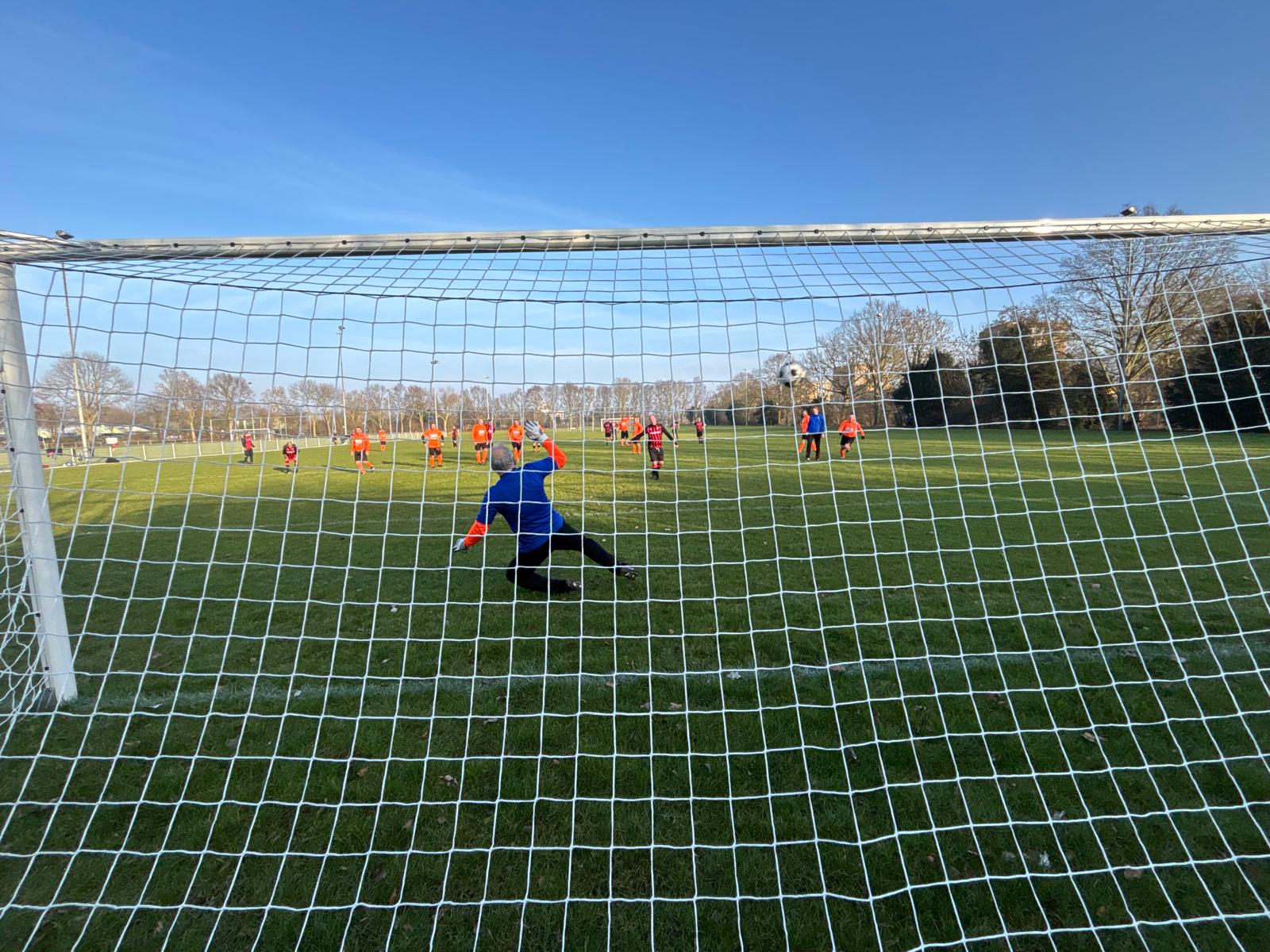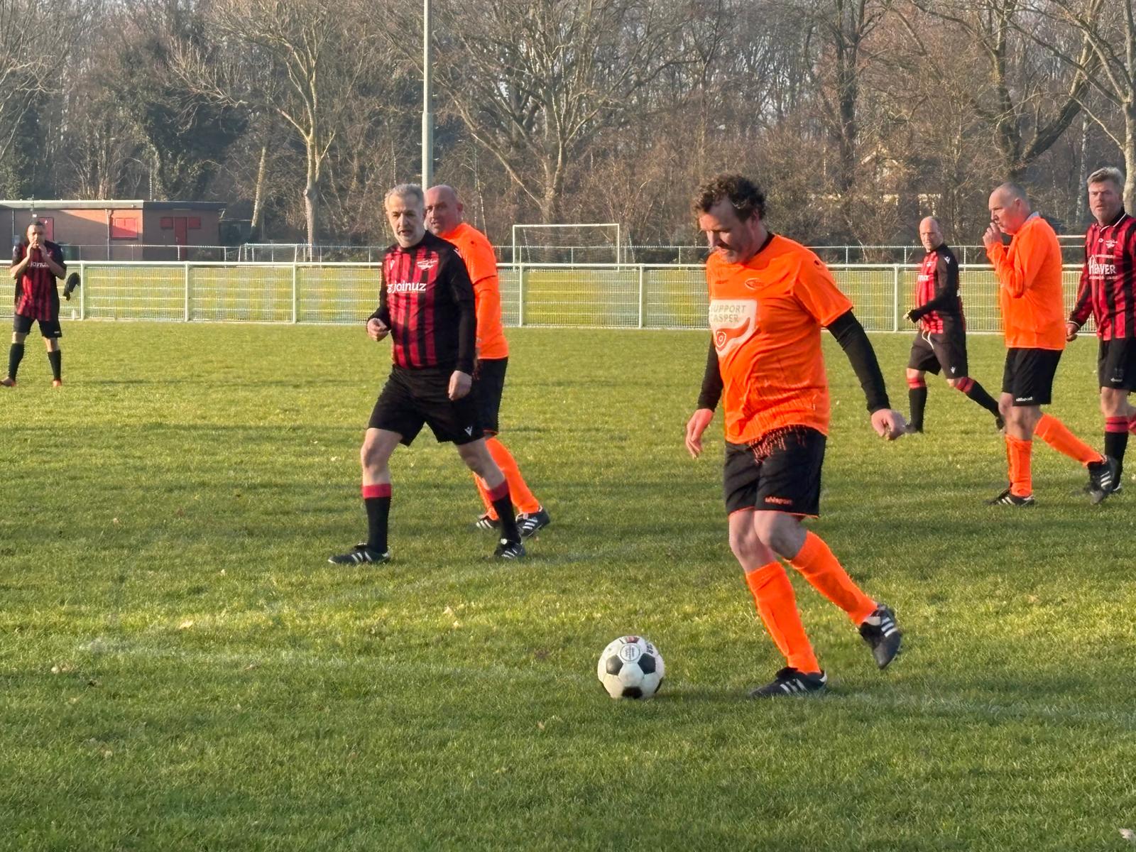 De eerste veteraan, die het kunststukje van De Wit wilde nadoen was Paul, hij stiftte de bal over de keeper. Naast. Daarna was het de beurt aan een zwaluw. Hij slaagde er wel in. 1-0. De 2-0 was onnodig, nadat drie Oranjekansen om zeep waren geholpen. Achmed kent de geschiedenis van Rob de Wit niet en had geen last van stiftangst. Hij scoorde de 2-1.