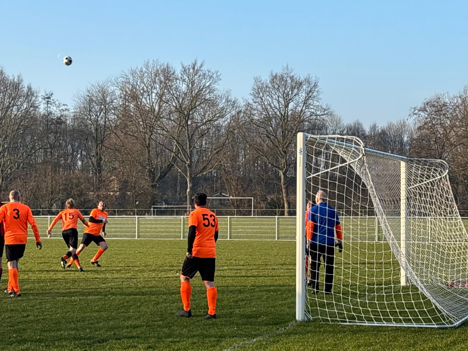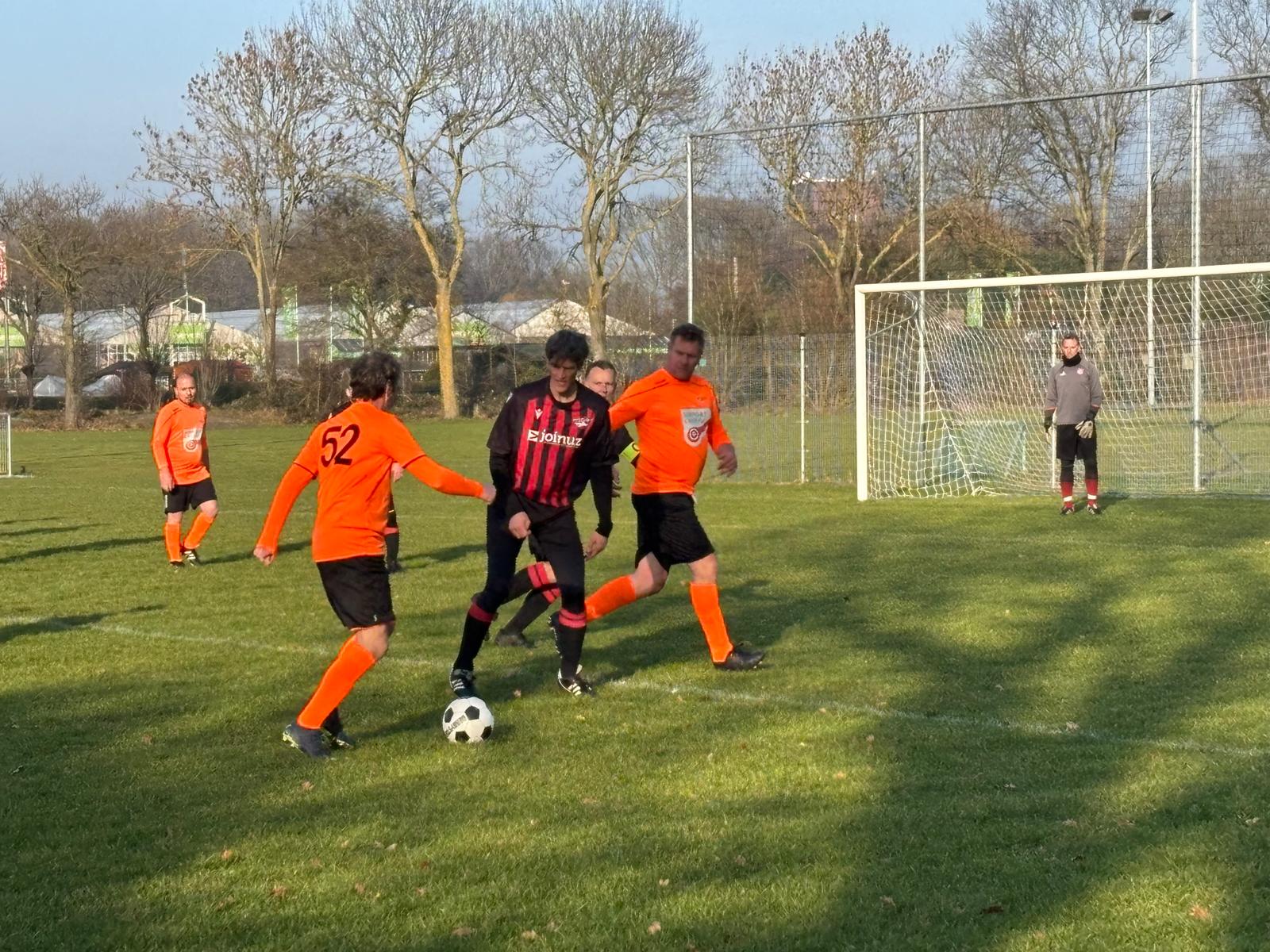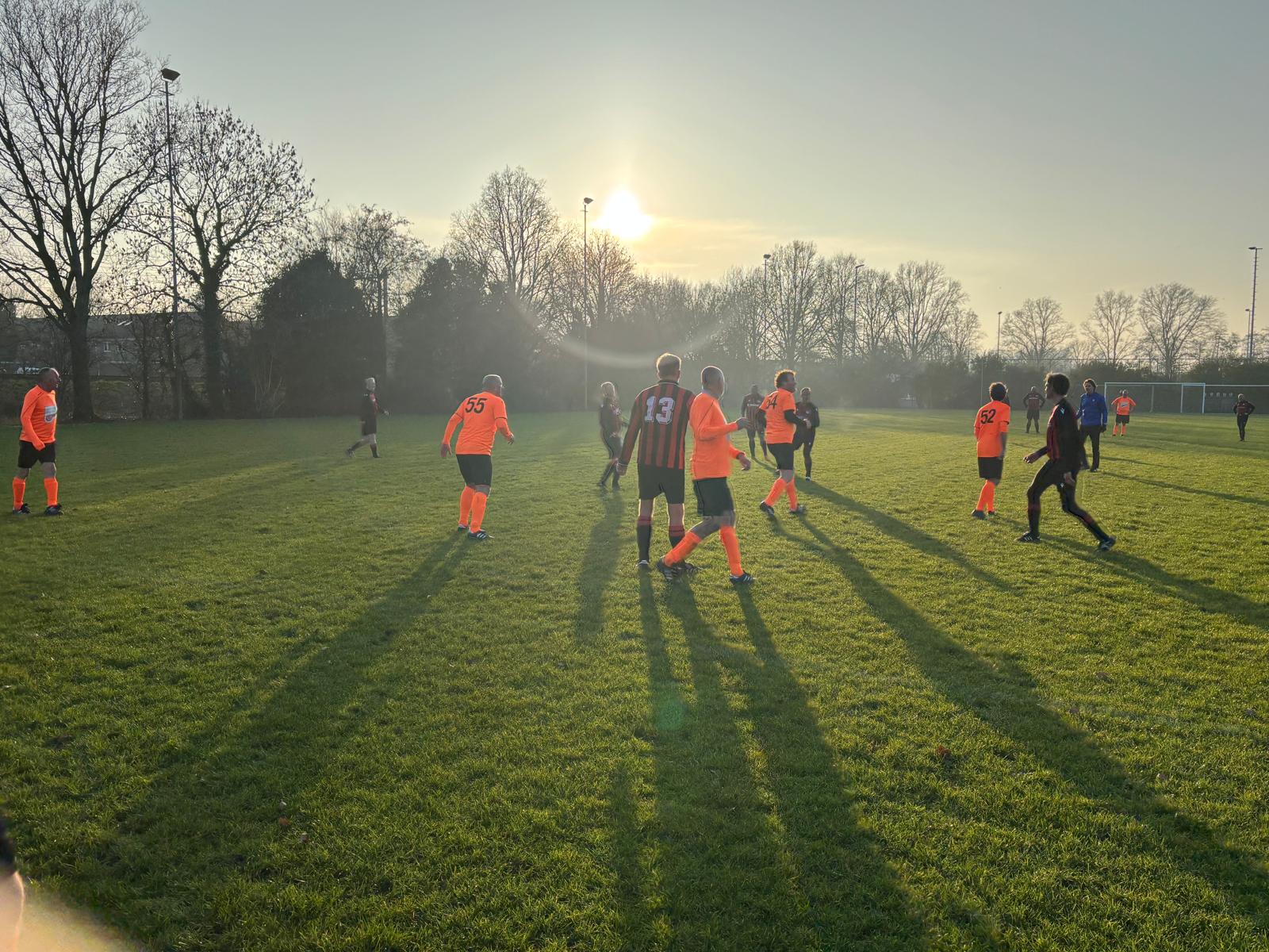 Elf vergrijsde zwaluwen konden geen zomerse soelaas brengen op de ijzige hobbelpiste in Hoorn. Zo koud was het, dat reservespelers Ernst en Lex S een bakkie snert gingen halen in de kantine van de sympathieke HCSV, terwijl de 11 overige heldhaftige Oranjebikkels in de ijzige vrieskou droomden van geïmporteerde hete oosterse olie, wuivende palmbomen in Spanje en Aperol Spritz aan een Italiaans zwembad.