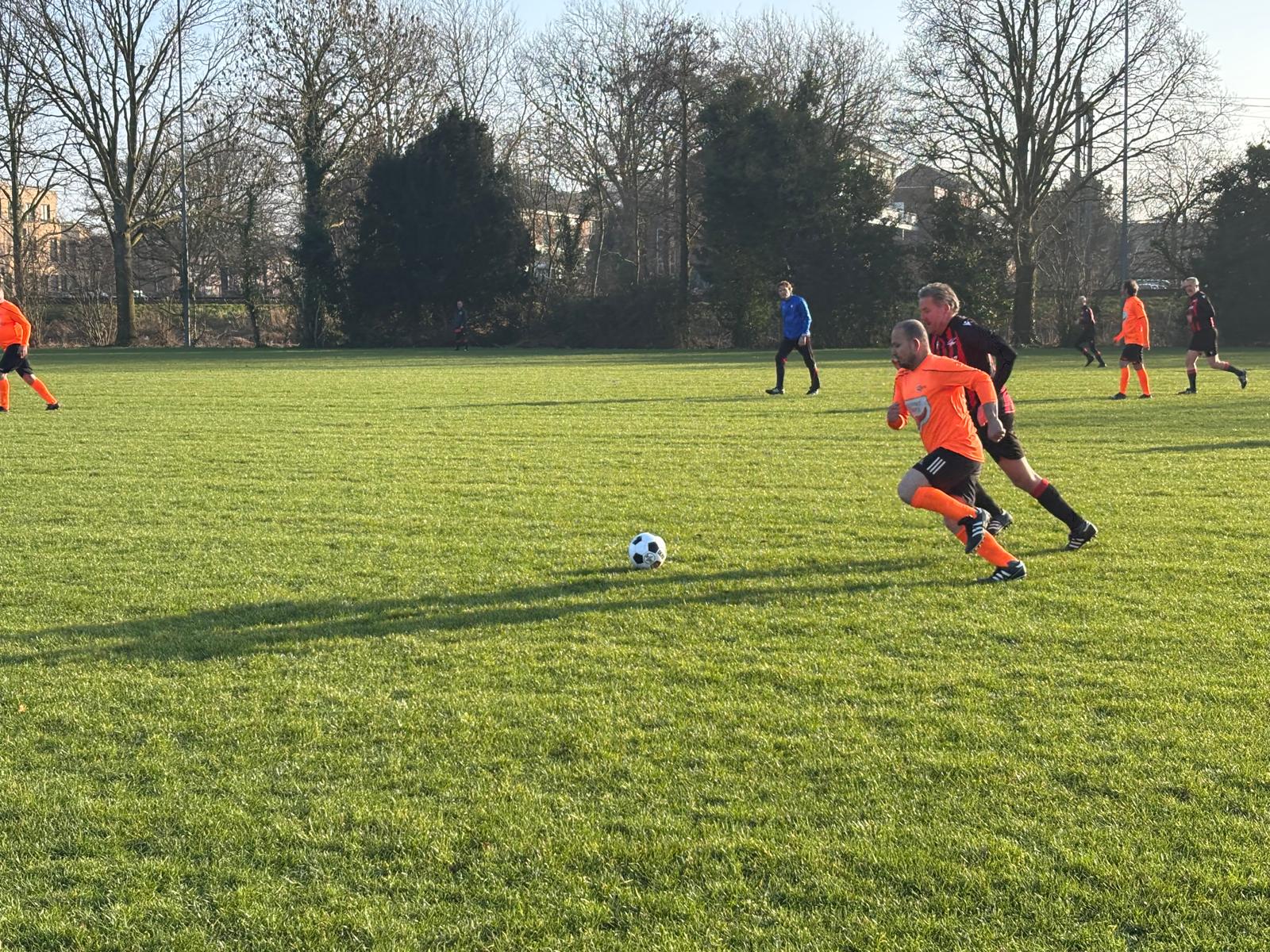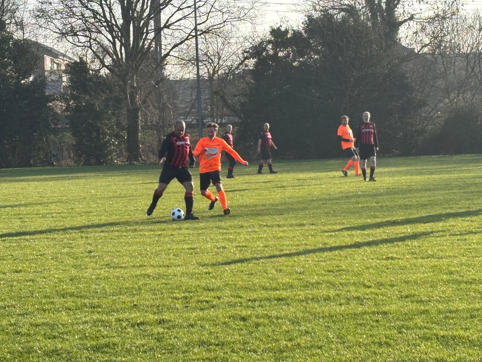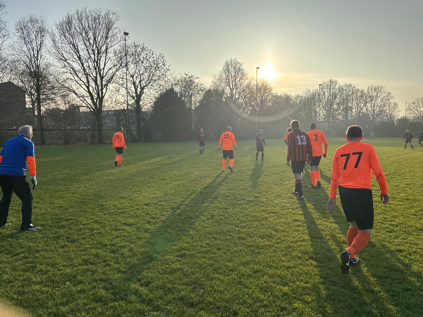 Elf vergrijsde zwaluwen konden geen zomerse soelaas brengen op de ijzige hobbelpiste in Hoorn. Zo koud was het, dat reservespelers Ernst en Lex S een bakkie snert gingen halen in de kantine van de sympathieke HCSV, terwijl de 11 overige heldhaftige Oranjebikkels in de ijzige vrieskou droomden van geïmporteerde hete oosterse olie, wuivende palmbomen in Spanje en Aperol Spritz aan een Italiaans zwembad.