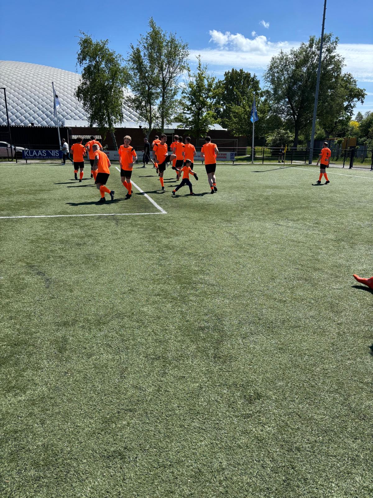 Daarna nog met de wissels een balletje over spelen om het balgevoel nog even op scherp te zetten voor het belangrijkste moment van de dag, de AFTRAP!!!