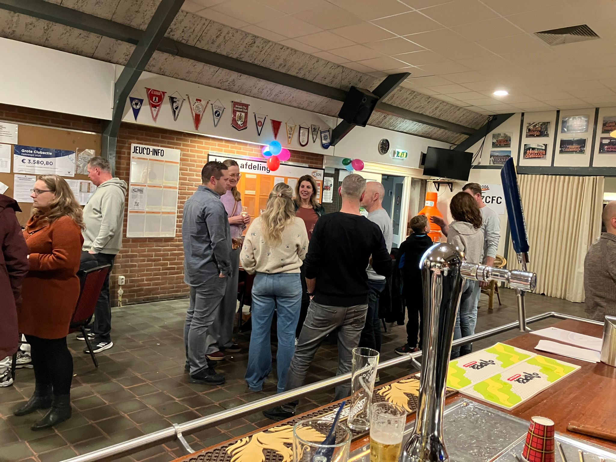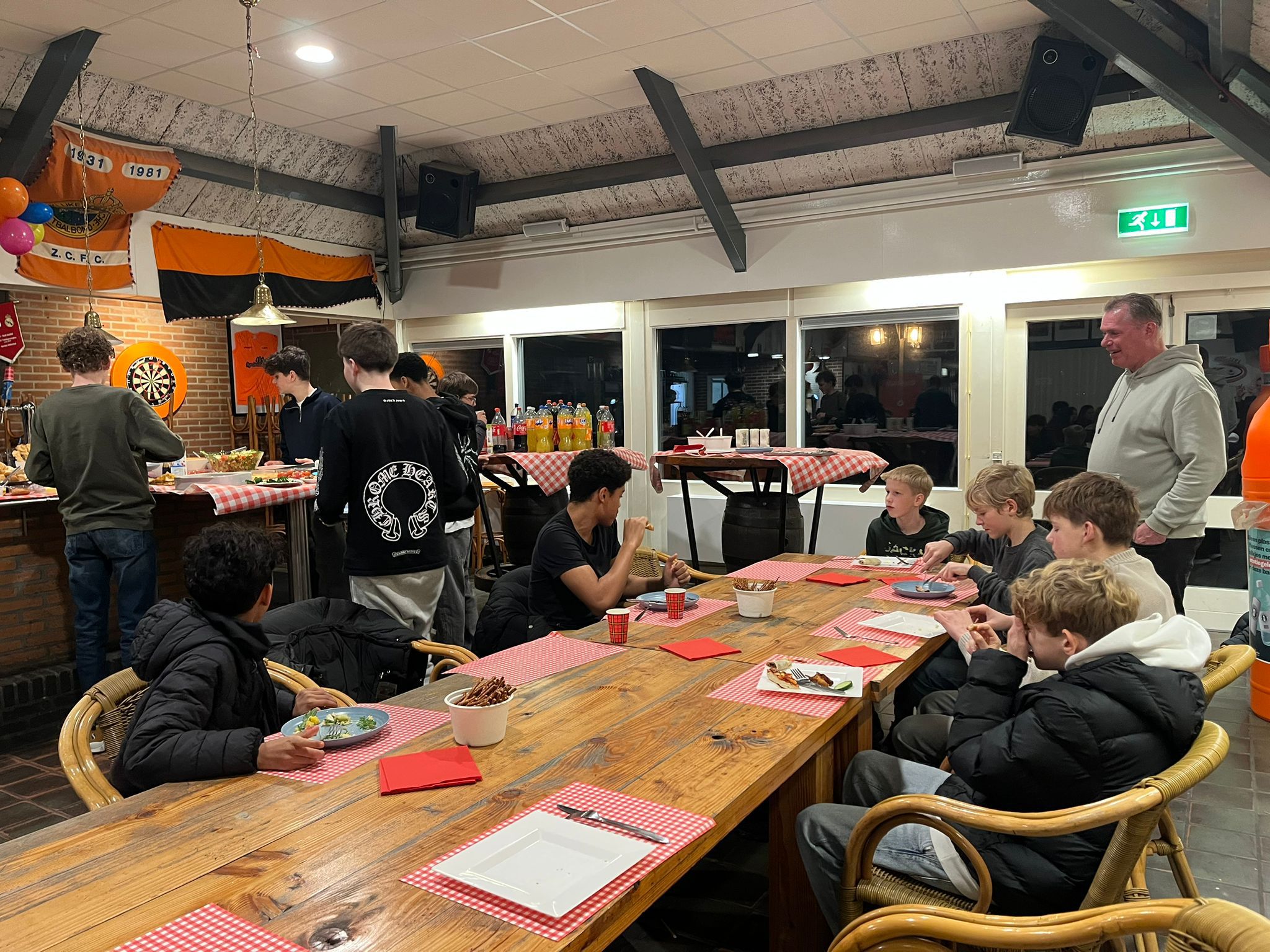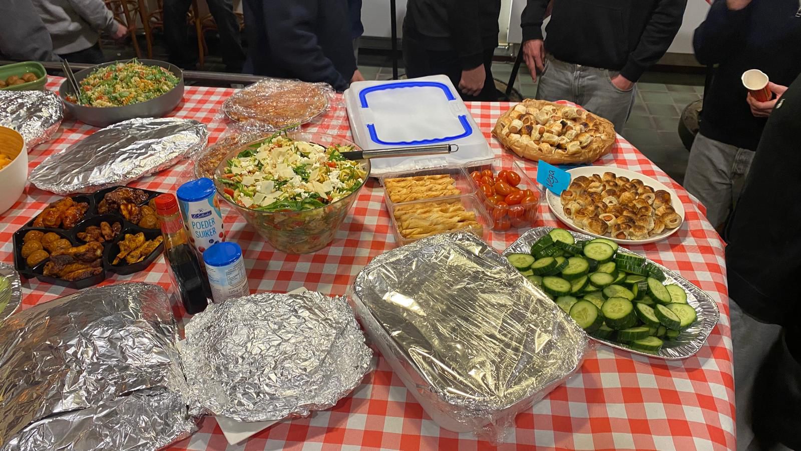 Onder het genot van pizza chips brownies salade en nog veel meer werden de buikjes flink gevuld. Hierna was er tijd voor een trap tegen een bal, quiz, wie ben ik of een potje darts. Na dit alles sloten de ouders zich aan voor een kleine borrel.